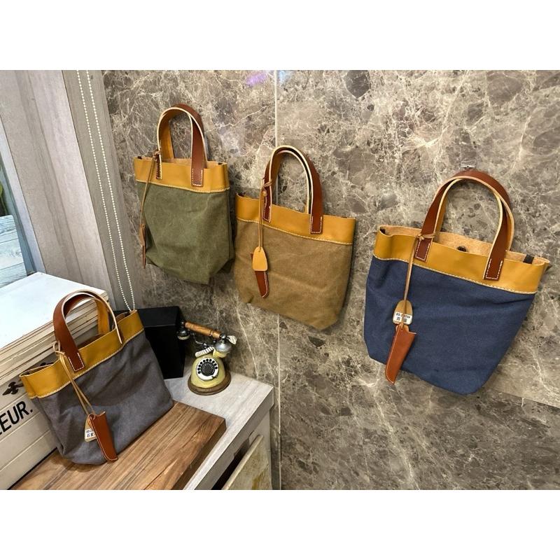 🔥 現貨【🇰🇷 Tanned】|韓國 2story手提水洗帆布布配牛皮手提包👜正韓 真皮系列 牛皮皮革 復古包 水洗包