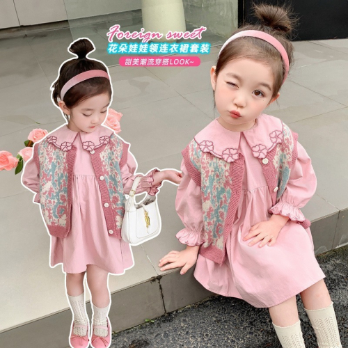 女童小香風毛衣洋裝套裝2023秋季新款韓版兩件組童裝23926-1