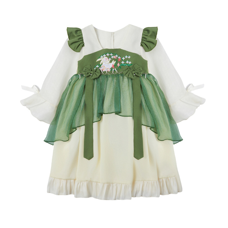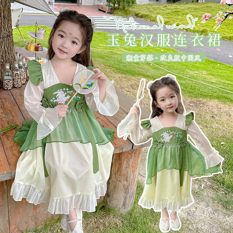 2023秋季新款女童珍珠長袖漢服連身裙一件代髮中國古唐風裙童裝J23926-28