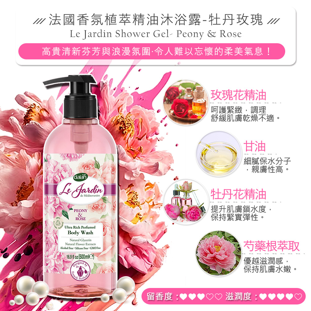 | 【土耳其dalan】法國香氛植萃精油沐浴露-牡丹玫瑰500ml |