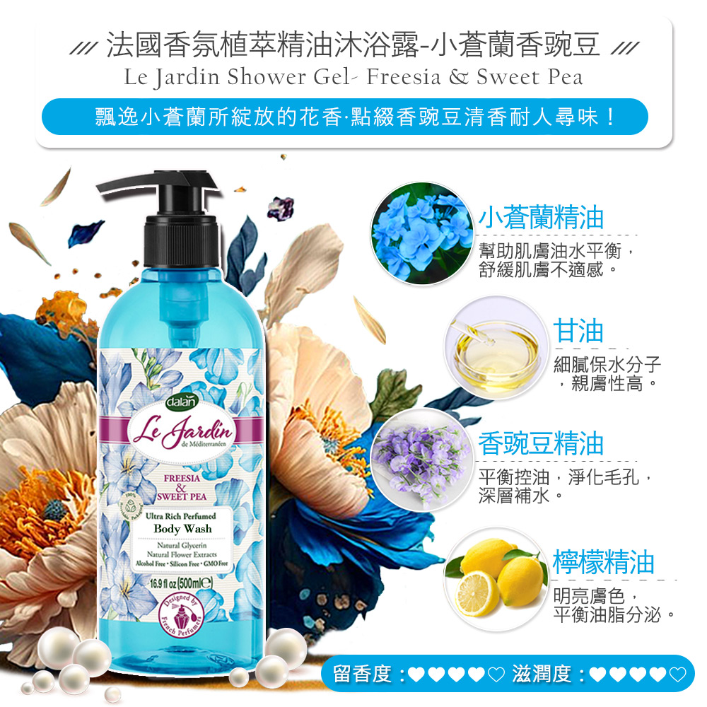 | 【土耳其dalan】法國香氛植萃精油沐浴露-小蒼蘭香豌豆500ml |