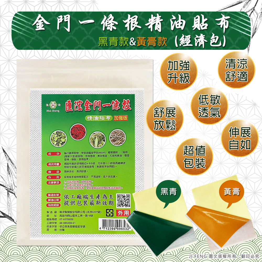 【匯浤】金門一條根精油貼布(黑青款)-涼感(經濟包/9X15cm/10片/包)