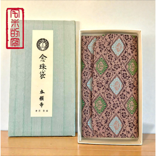 這個特殊的京都 西本願寺置物袋/念珠袋上有紫藤花卉圖案,