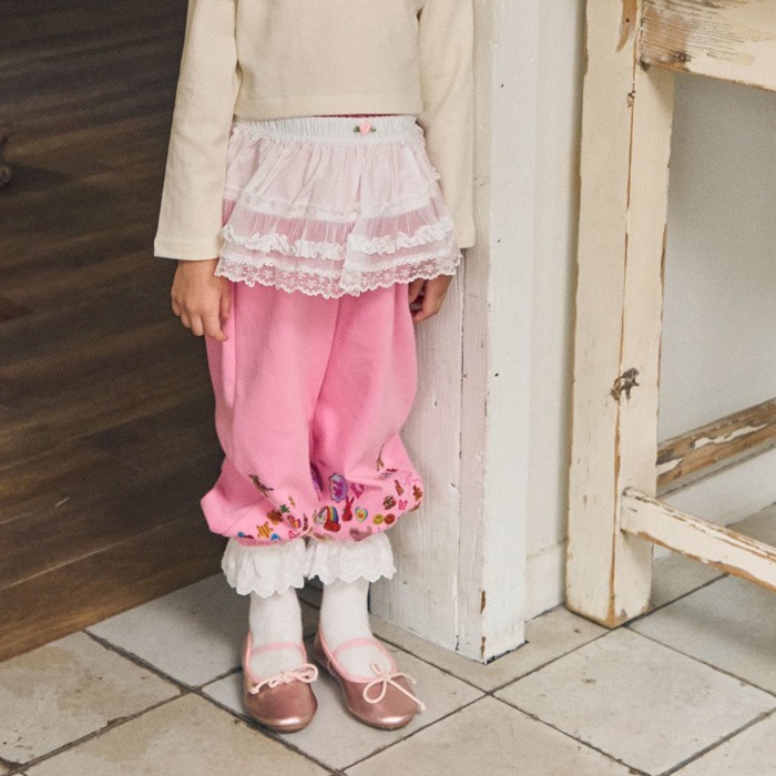 🇰🇷韓國童裝|2025秋款🍂CHOUCHOUSHASHA貼紙風長褲(不含白色屁簾)【粉色】