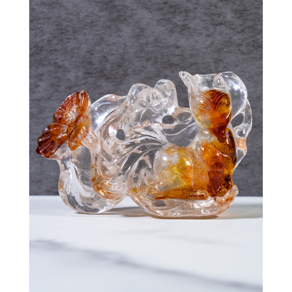 膠花水晶屬異象水晶一員,在水晶形成冰裂後礦物進入縫隙裡形成的各種不同的形狀,最為常見的就是黃膠花、紅膠花。