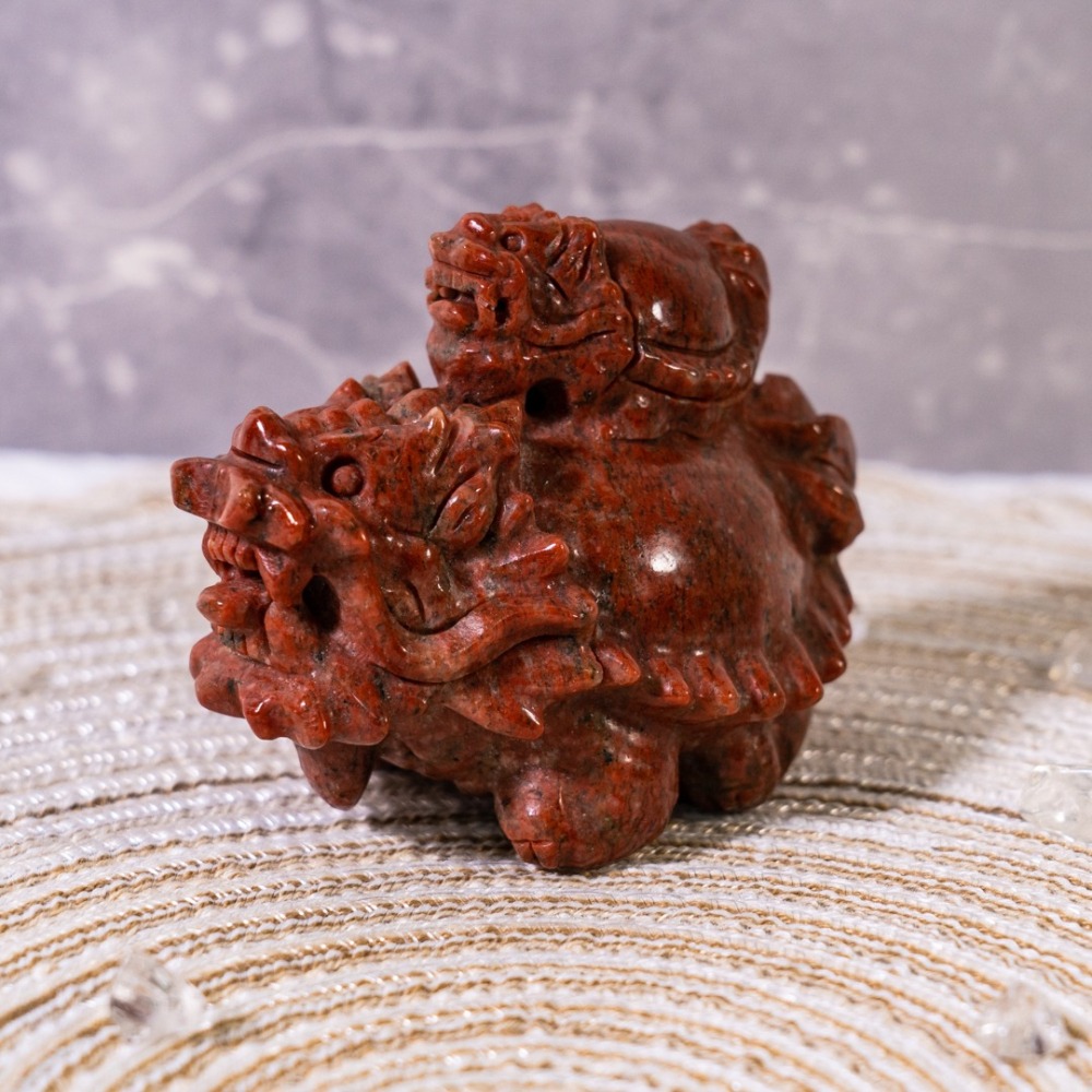 市面上常常會看到這款型態的龍龜,此為機器cnc加工製成,再用人工細修及拋光而成,可以說是半人工製成,但每個師傅細修功夫都非常不一樣,礦石本身也有天然紋理,因此每隻都有些許不同,都是獨一無二的。