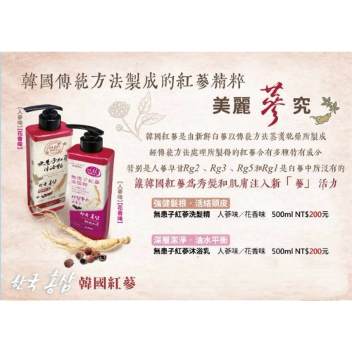 無患子紅蔘沐浴乳 人蔘味/花香味 500ml NT$200元