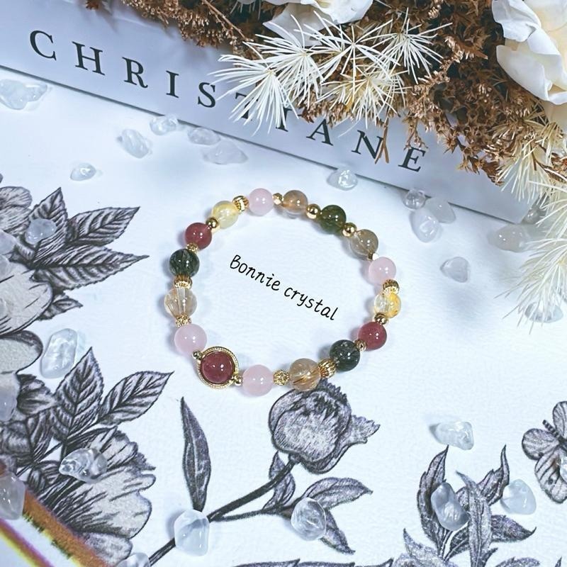 #客製化水晶手鍊 #水晶手鍊 #水晶 #水晶手鍊設計款 #水晶手鏈 #水晶手鍊客製款 #水晶手鍊設計 #草莓晶 #粉晶 #西柚粉 #金髮晶 #黃膠花 #綠碧璽髮晶