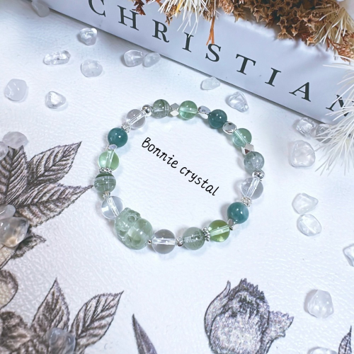 這款手鍊採用綠色系水晶,溫潤透亮,猶如大自然的生命力凝聚於腕間。
