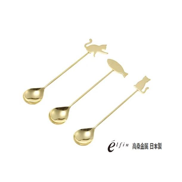 【高桑金屬】高品質日本製貓咪金色不銹鋼湯匙 咖啡匙攪拌湯匙 魚湯匙 一組3支 高桑金屬 正版商品