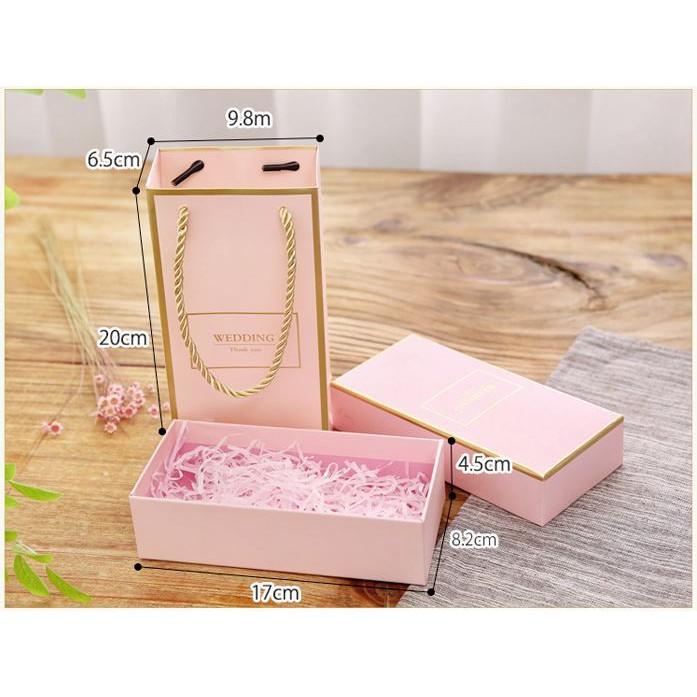 婚禮小物專用禮盒 禮盒尺寸:17.5*8.5*5 cm 紙袋尺寸:9.8*6.5*20 cm 材質:高級硬卡紙,質感極佳 注意!!! 本賣場因包裝成本考量,全賣場訂購滿100元以上才發貨,未達100元訂單自動取消,不另行通知!! 造成不便,敬請見諒!!