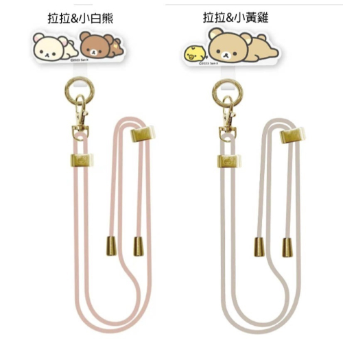 拉拉熊的環形配飾和肩帶/頸帶。多用途環加支架是一個可以夾在手機殼中使用的手機環。通過將手指穿過環,提高智能手機的握持感,防止掉落。由於環還可以當作繩索掛在背包或腰帶上,非常方便攜帶並增添趣味。搭配附帶的肩帶使用,可以將手機掛在肩膀或頸部使用。肩帶可以通過滑塊進行調節長度。