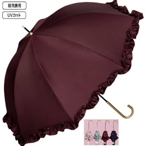 【Wpc.】緞面 荷葉邊 奢華 直傘 上品質感 長傘 低調的奢華感 晴雨兩用 抗UV90% 雨傘 立傘 禮服