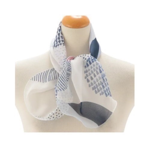 【一草一木】領巾 義大利製 質感柔軟 圍巾 方巾 脖圍 輕薄 透光 簡約時尚 可自行造型 包包造型 四季皆適用~藍白圈圈
