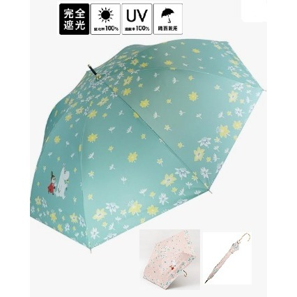 傘面上印有**花朵、嚕嚕米與小不點(リトルミィ)**的溫馨圖案,療癒又吸睛。