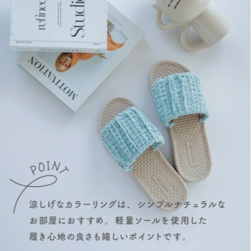 採用 柔軟皺褶布料,並以聚攏設計展現出簡約卻充滿女性魅力的涼拖鞋。