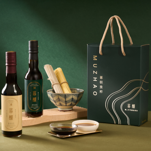 和在地80年的製麵工廠合作推出拌麵組合。選用最適合暮釀醬油搭配使用的,烏龍茶及金盞花口味,色香味俱全。