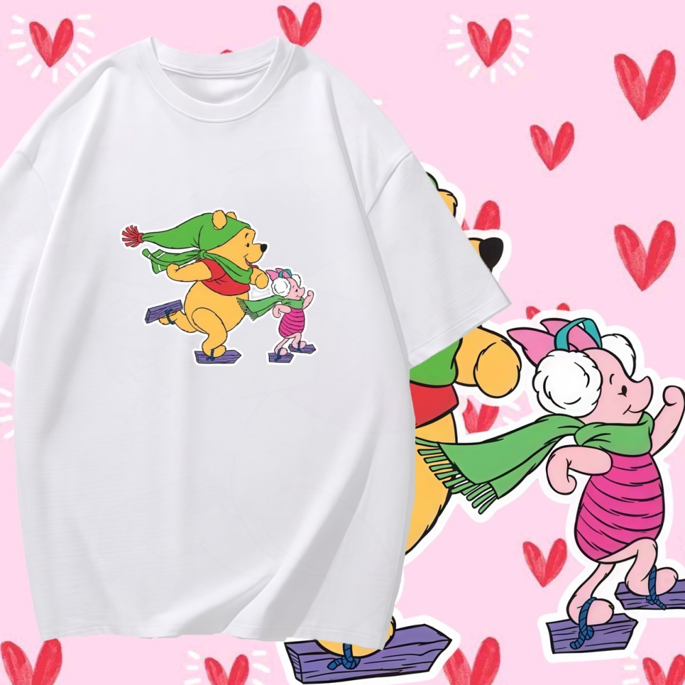 S-3XL大尺碼 小熊維尼和小豬溜冰 短袖T恤女 oversize衣服女裝上衣大碼棉tee 情侶t