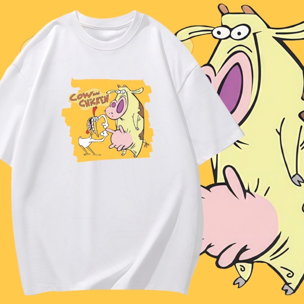 S-3XL大尺碼 卡通雞與牛 短袖T恤女 oversize 衣服 棉tee 情侶裝