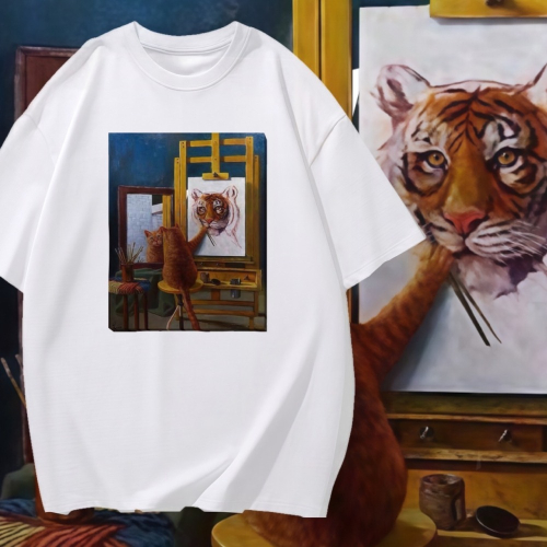 S-3XL大尺碼 老虎?貓咪? 貓咪自象畫 短袖T恤 oversize 棉tee 情侶t