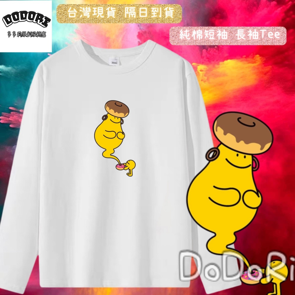 台灣現貨 100%重磅純棉 小黃人甜甜圈精靈 可愛印花 短袖t恤 長袖 兒童 情侶 團體 班服 社團 男女通用