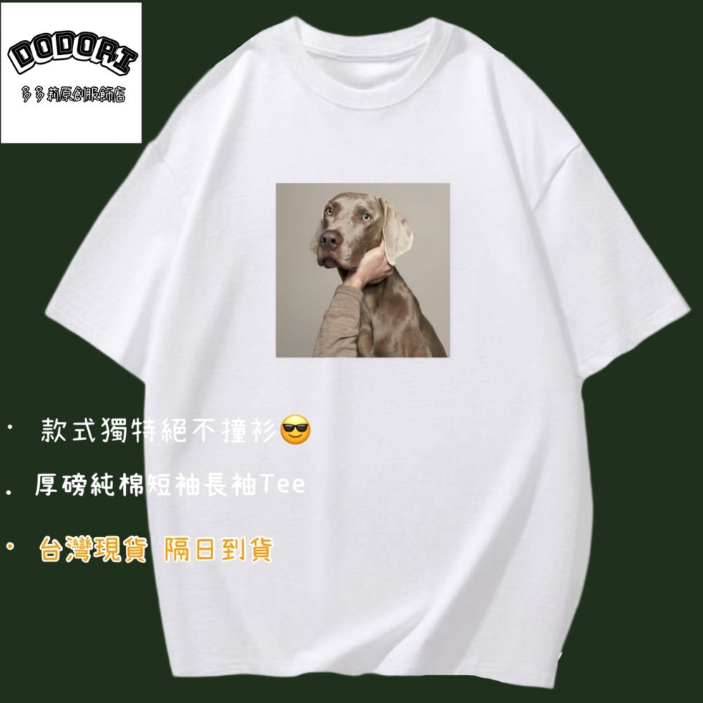台灣現貨 100%重磅純棉 威瑪犬 最近脖子有點酸 狗狗趣味印花 短袖t恤 長袖 兒童 情侶 團體 親子裝上衣