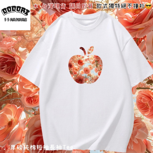 台灣現貨 100%重磅純棉 蘋果玫瑰花叢 花朵印花 短袖T恤 長袖 兒童 情侶 團體 親子 園藝 客製化 女裝