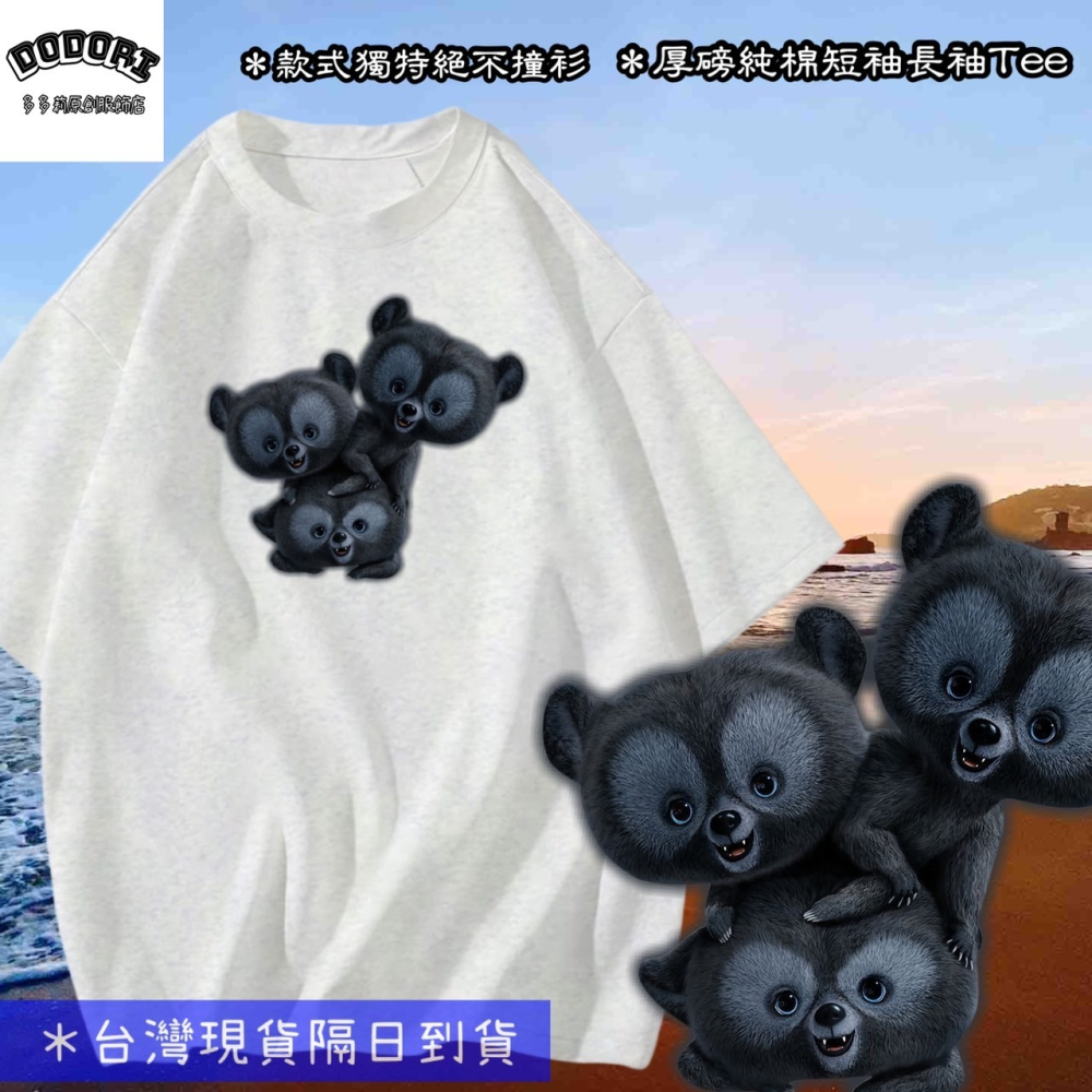 台灣現貨 100%純棉 3隻黑色小熊印花 短袖t恤女 長袖 兒童 情侶 團體 親子 可愛動物 大碼 男女裝服飾