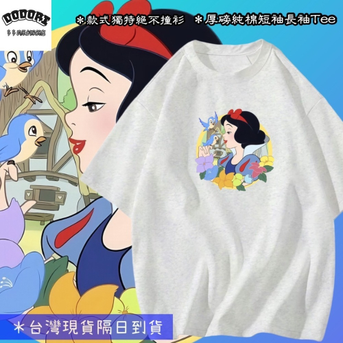 台灣現貨 100%純棉 白雪公主小鳥花朵印花 短袖t恤 兒童 長袖 經典童話 卡通 親子 大尺碼 最美麗女孩