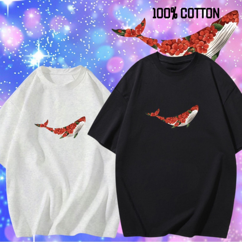 台灣現貨 韓系鯨魚花朵 短袖T恤女 長袖T恤 兒童短袖T恤 動物T 休閒上衣 寬鬆