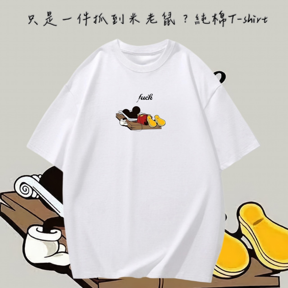 抓到米老鼠了~趣味印花 短袖T恤女 長袖T恤 兒童短袖T恤 情侶T 親子T 卡通休閒