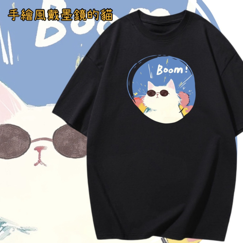 純棉 墨鏡貓咪 字母印花 短袖T恤女 長袖T恤 兒童T恤 情侶 親子 休閒裝