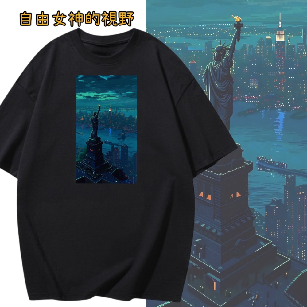 純棉 自由女神的視野 風景印花 短袖T恤女 長袖T恤 兒童T 情侶 親子 休閒 寬鬆