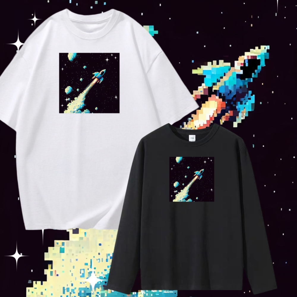 純棉T 格子火箭太空印花 短袖T恤女 長袖T恤 兒童T恤 情侶T 親子裝 團體 休閒