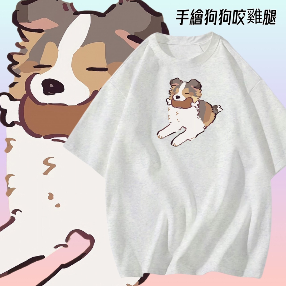 純棉t 狗狗吃肉塗鴉印花 短袖t恤女 長袖t恤 兒童t恤 情侶t 親子裝 團體 休閒上衣