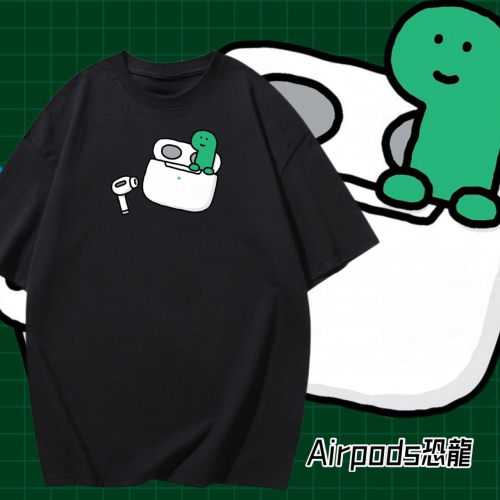 純棉T 綠色恐龍裝耳機印花 短袖T恤女 長袖T恤 兒童T恤 情侶T 親子裝