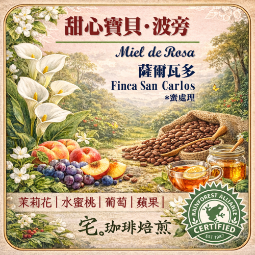 Miel de Rosa甜心寶貝蜜處理是Finca San Carlos 以100% 波旁做成蜜處理法,