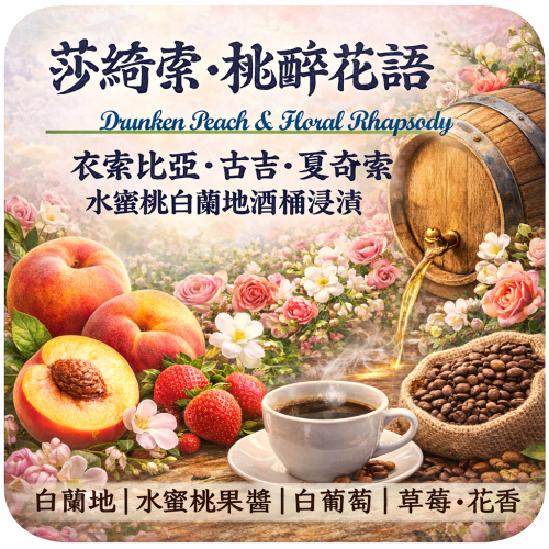 衣索比亞・古吉・夏奇索【莎綺索・桃醉花語】#水蜜桃白蘭地酒桶浸漬 水洗