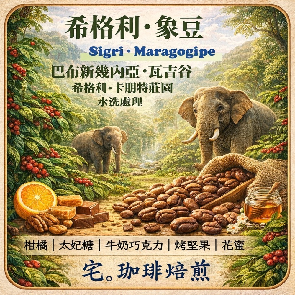 📢2入組優惠實施中...巴布新幾內亞.Sigri.卡朋特莊園【希格利.象豆】水洗|【宅・珈琲】