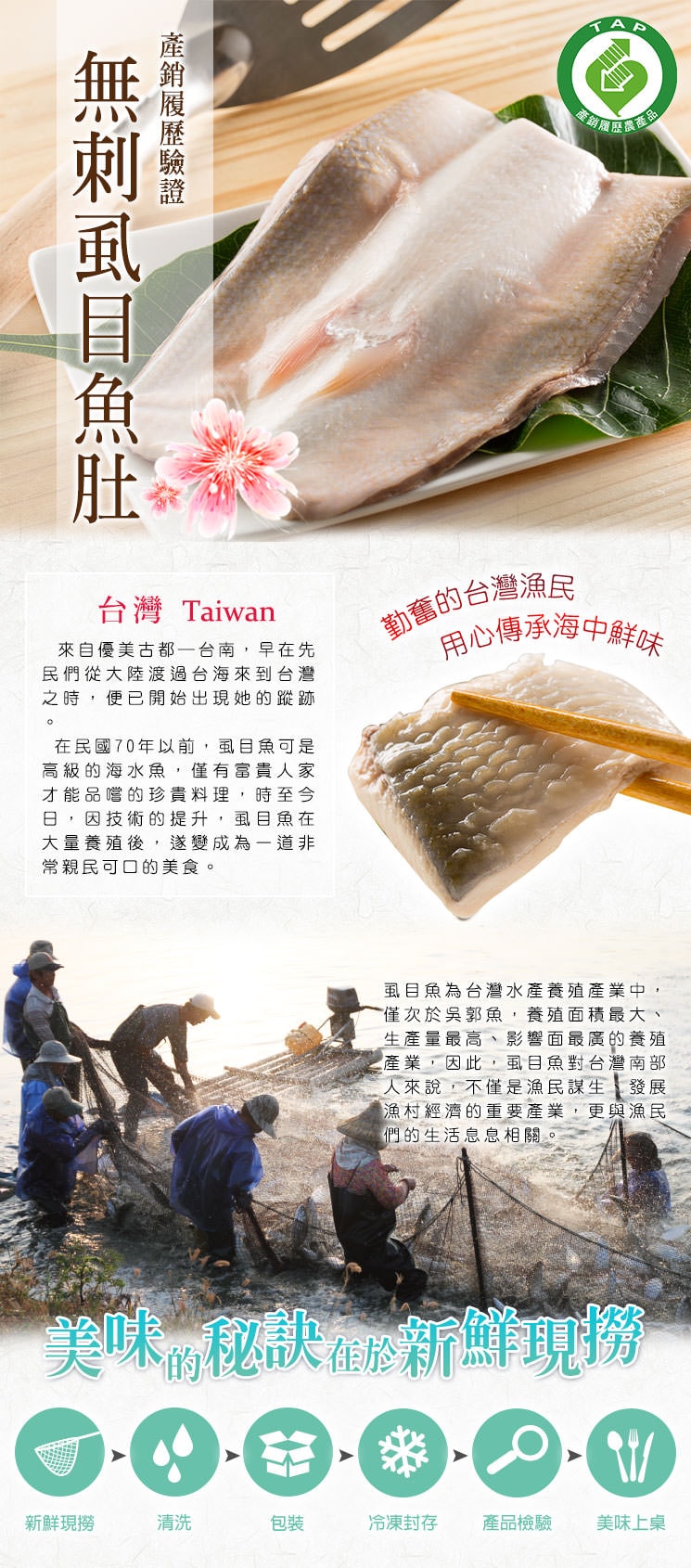 👍正港台南養殖虱目魚,又稱牛奶魚,擁有TAP產銷履歷驗證。