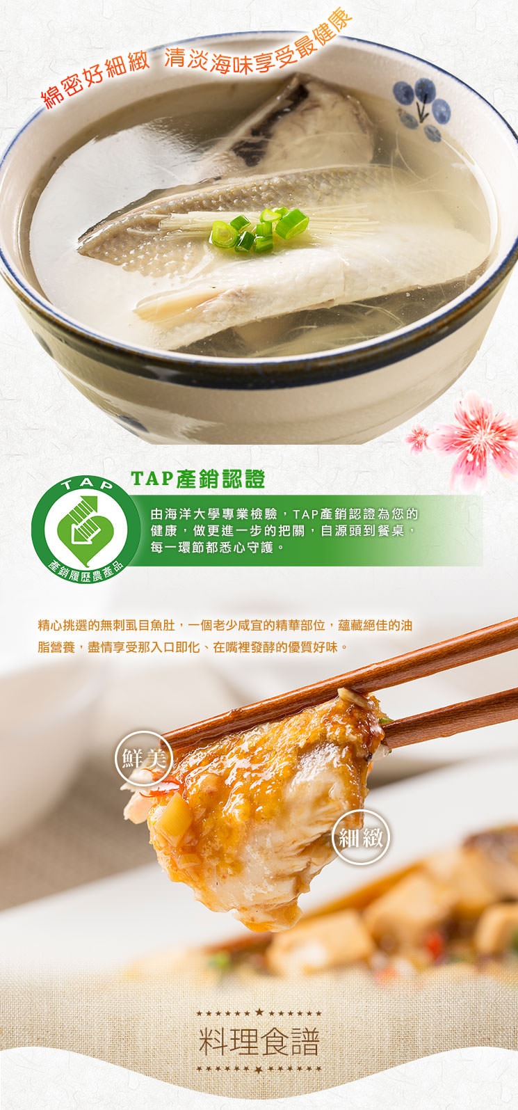 👍精選虱目魚肚精華部位,口感綿密細緻,絕佳油脂入口即化。