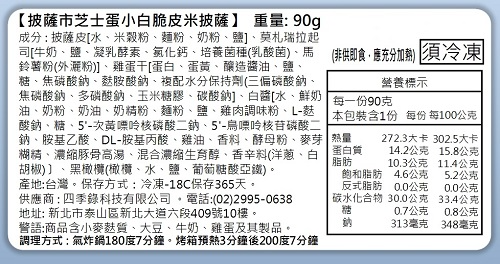 ※不需退冰,烤箱預熱時取出披薩等待,烤箱預熱完成後撕開包裝袋取出披薩直接進烤箱,火全開烤4分鐘後,