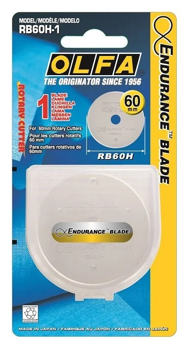 超耐久60m/m拼(裁)布刀片,適用於OLFA 60m/m 割布刀RTY-3/G 、RTY-3/NS、RTY-3/DX,單片裝。