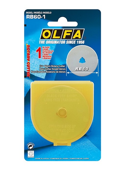 補充刀片: OLFA 60m/m 直徑圓型刀片 RB60-1(單片裝)、RB60-5(五片裝)、RB60H-1。