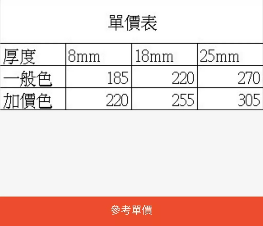 一般色:一才單價:220元(一律4邊ABS封邊)