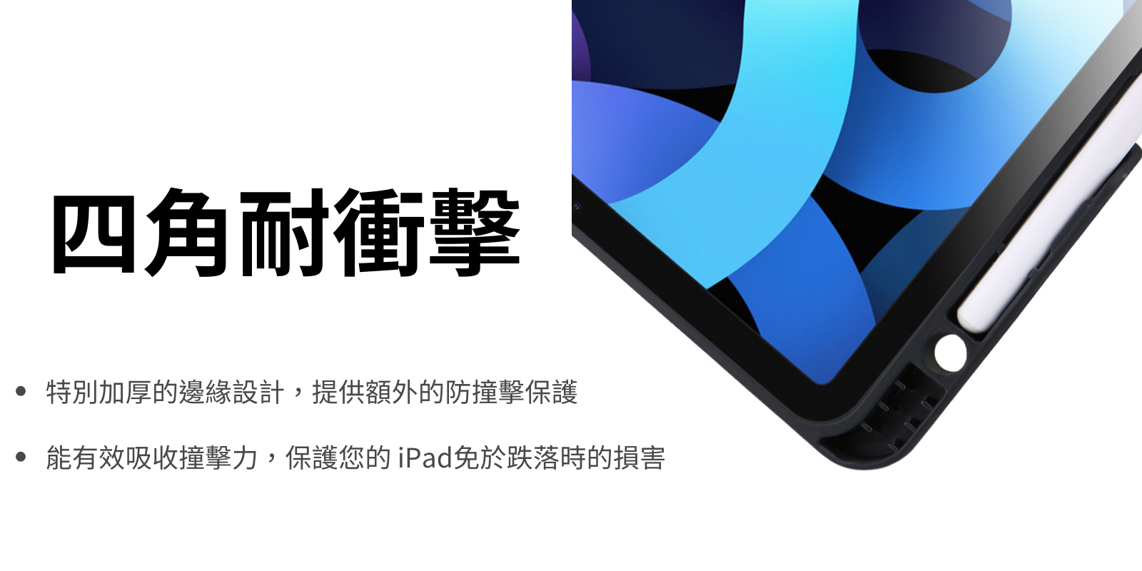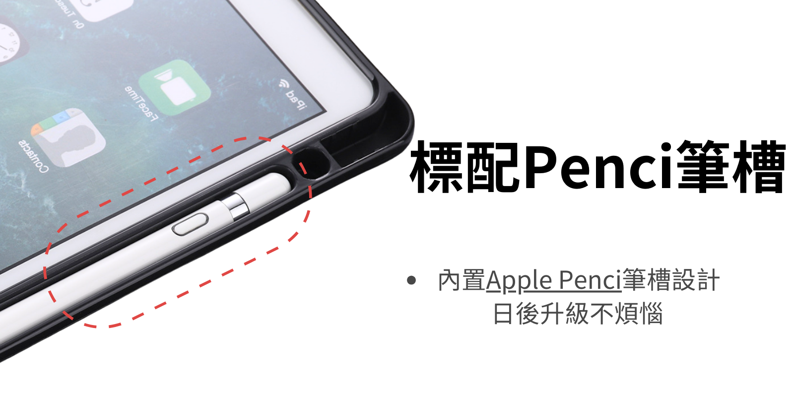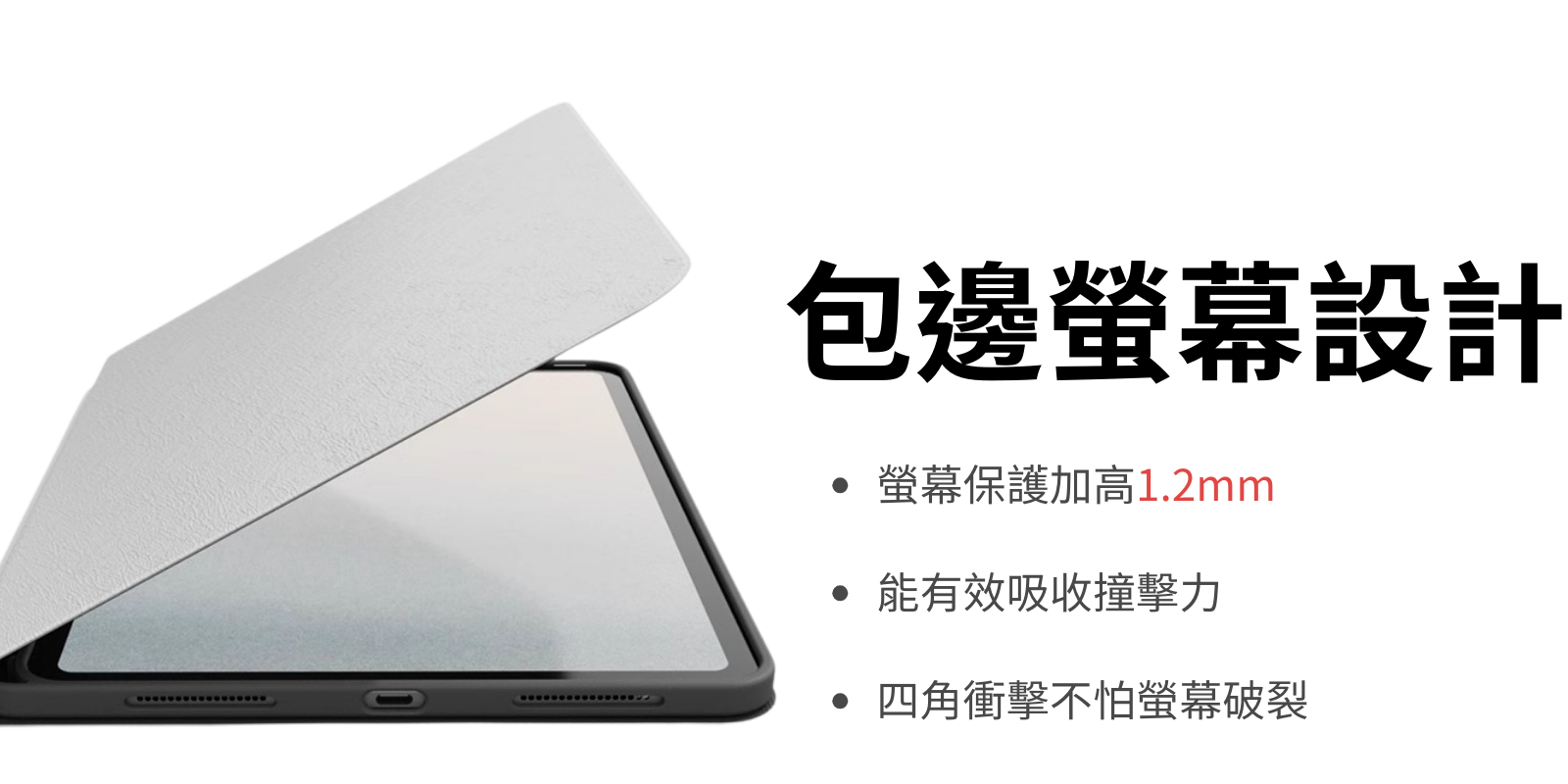 ●若您的iPad是滿版保護貼,安裝底殼矽膠(附筆槽)的保護殻時可將殼往外扳,將保護貼擠進去,以免保護貼受擠壓。