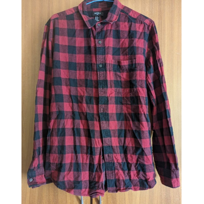 格紋襯衫 格紋 襯衫 長袖 forever21 forever 21 165 / 90A 穿著 格紋襯衫 衣服 紅黑