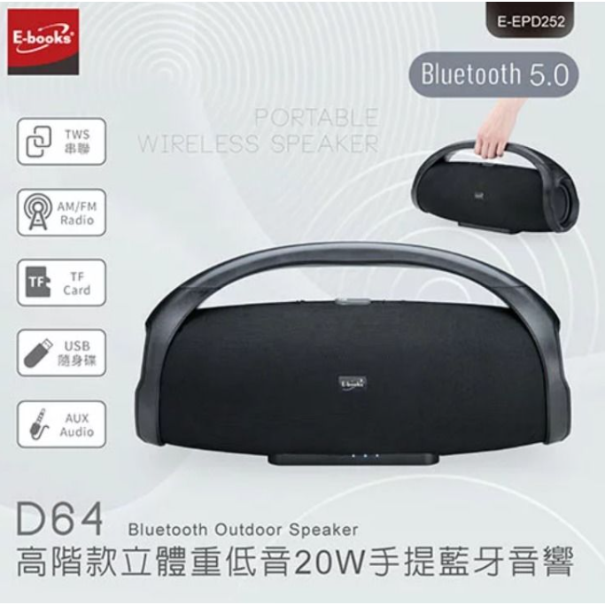 E-books 高階款立體重低音20W手提藍牙音響 D64 Ebooks 音響 藍牙音響 手提音響 藍芽