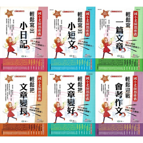 本書專為一年級設計,由一句話到五句話,由簡到難一步步引導一年級的小朋友寫作,「蜜老師說」、「動動腦」、「動動手」等單元,教孩子動動腦、想一想,從日常生活的人、事、物出發,培養小朋友的思考力及寫作力,動手練習寫出好文章。 本書專為國小二年級學生設計,從練習描寫「人」、「事」、「物」開始,一步步引導二年級的學童,「動動腦」、「範文」、「段落大意說明」教孩子動動腦、想一想,從日常生活的人、事、物出發,培養小朋友的思考力及寫作力,動手練習寫出好文章。 本書專為國小三年級學生設計,一步步引導三年級的孩子認識文章的段落、格式,以及教孩子動動腦、想一想,從日常生活的人、事、物出發,每篇範文都清楚標示文中所用的修辭技巧、佳句成語、幫助小朋友重點記憶,輕鬆學習寫作文,「詞語小寶典」加強孩子學習佳句、成語,「語文大挑戰」培養小朋友的思考力及寫作力,讓孩子輕輕鬆鬆動手練習寫出好文章。 本書專為國小四年級學生設計,一步步引導四年級的孩子認識文章的段落、格式,教孩子動動腦、想一想,從日常生活的人、事、物出發,每篇範文都清楚標示文中所用的修辭技巧、佳句成語、幫助小朋友重點記憶,輕鬆學習寫作文,「詞語小寶典」加強孩子從文章中學習佳句、成語,「語文大挑戰」讓小朋友動動腦、動動手,培養思考力及寫作力,寫作不再是難事!讓孩子輕輕鬆鬆寫出好文章 本書專為國小五年級學生設計,讓五年級的孩子輕鬆分好文章的段落、格式,教孩子動動腦、想一想,從日常生活的人、事、物創意發想,每篇範文都清楚標示文中所用的修辭技巧、佳句成語、幫助小朋友重點記憶,輕鬆學習寫作文,「詞語小寶典」加強孩子學習名言佳句、成語,「範文」、「語文大挑戰」培養小朋友的思考力及寫作力,讓孩子輕輕鬆鬆動手練習寫出好文章。 本書專為國小六年級學生設計,讓六年級的孩子從日常生活的人、事、物出發,動動腦、想一想,每個單元都有不同文體範例小絕招,每篇範文都清楚標示文中所用的修辭技巧、佳句成語、幫助小朋友重點記憶,輕鬆學習寫作文,「詞語小寶典」加強孩子學習名言佳句、成語,「語文大挑戰」從練習與遊戲中,培養小朋友的思考力及寫作力,讓孩子輕鬆贏戰會考作文,順利寫出好文章。 🟣本賣場為參考書經銷商🟣 🟣書籍皆為全新品🟣 販售✔幼兒✔國小✔國中 🟡童書🟡參考書🟡自修🟡評量🟡考卷 🟡輔助教材🟡作業簿🟡練習簿🟡桌遊 ❌❌❌以下情況勿下訂單 ⓵急單、隔天到貨(超商物流正常2-3天) ⓶無法接受出貨運送過程擠壓到書本 ⓷未考慮清楚者,賣家無法修改訂單內容 ❗❗❗❗特別注意❗❗❗❗ 收到商品有問題請7天內告知,超過七天無法退換貨。 📎一般訂單處理約1-2天,如遇缺貨追加3-4天。 📎歡迎各級補習班團購,團訂另有優惠。 📎任何問題請多多利用聊聊,我們將盡快回覆您。 📎賣場 <未提供> 面交自取服務。