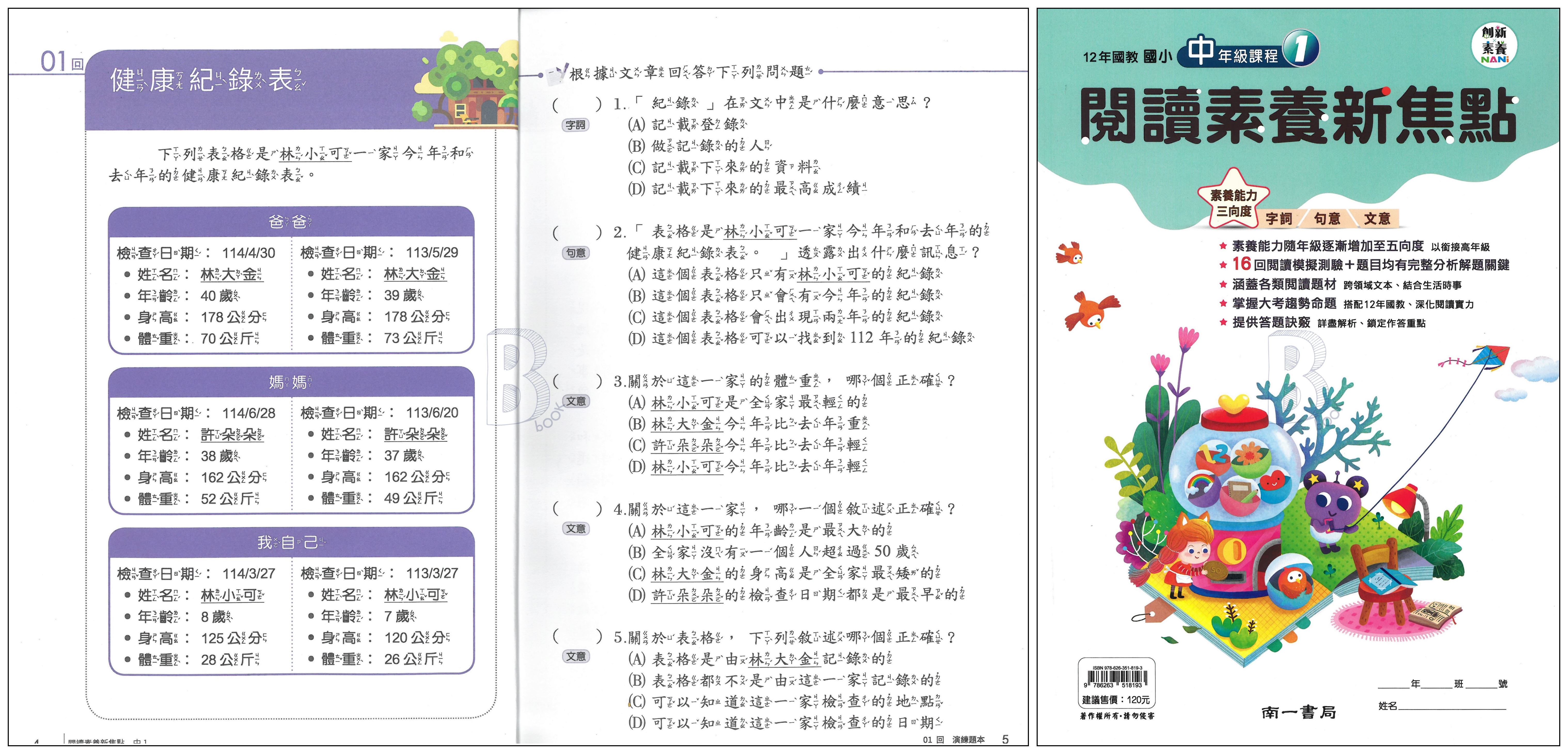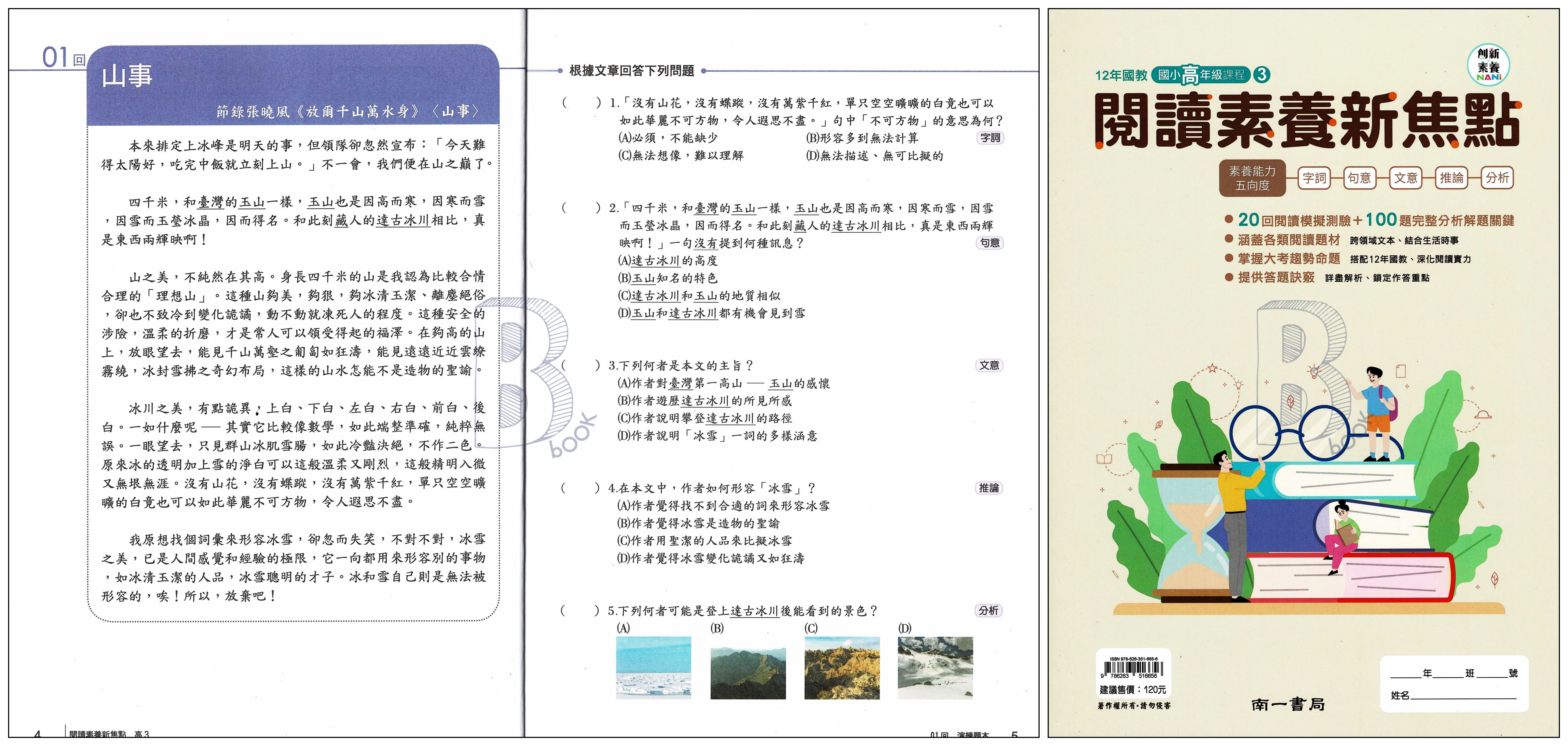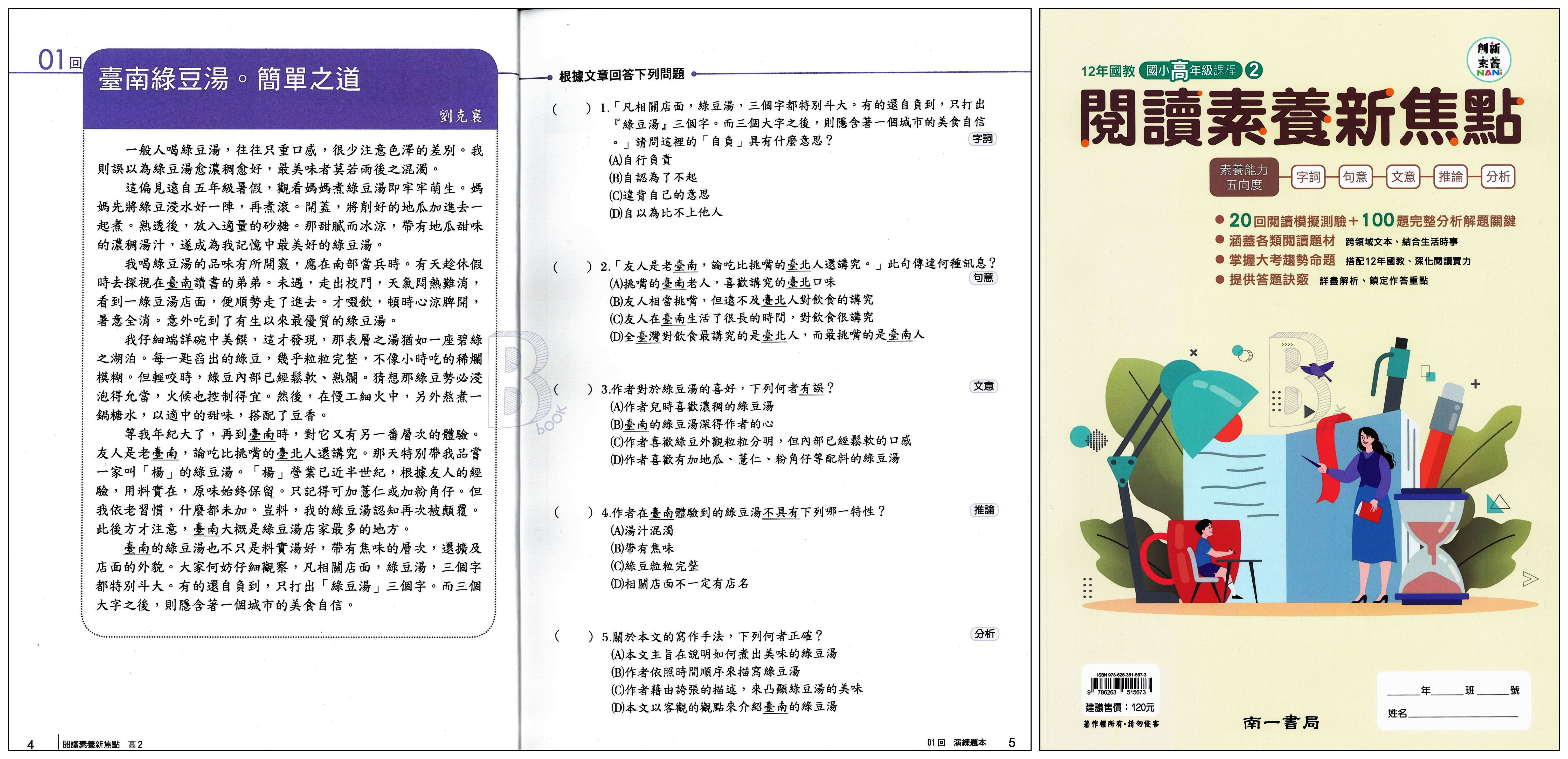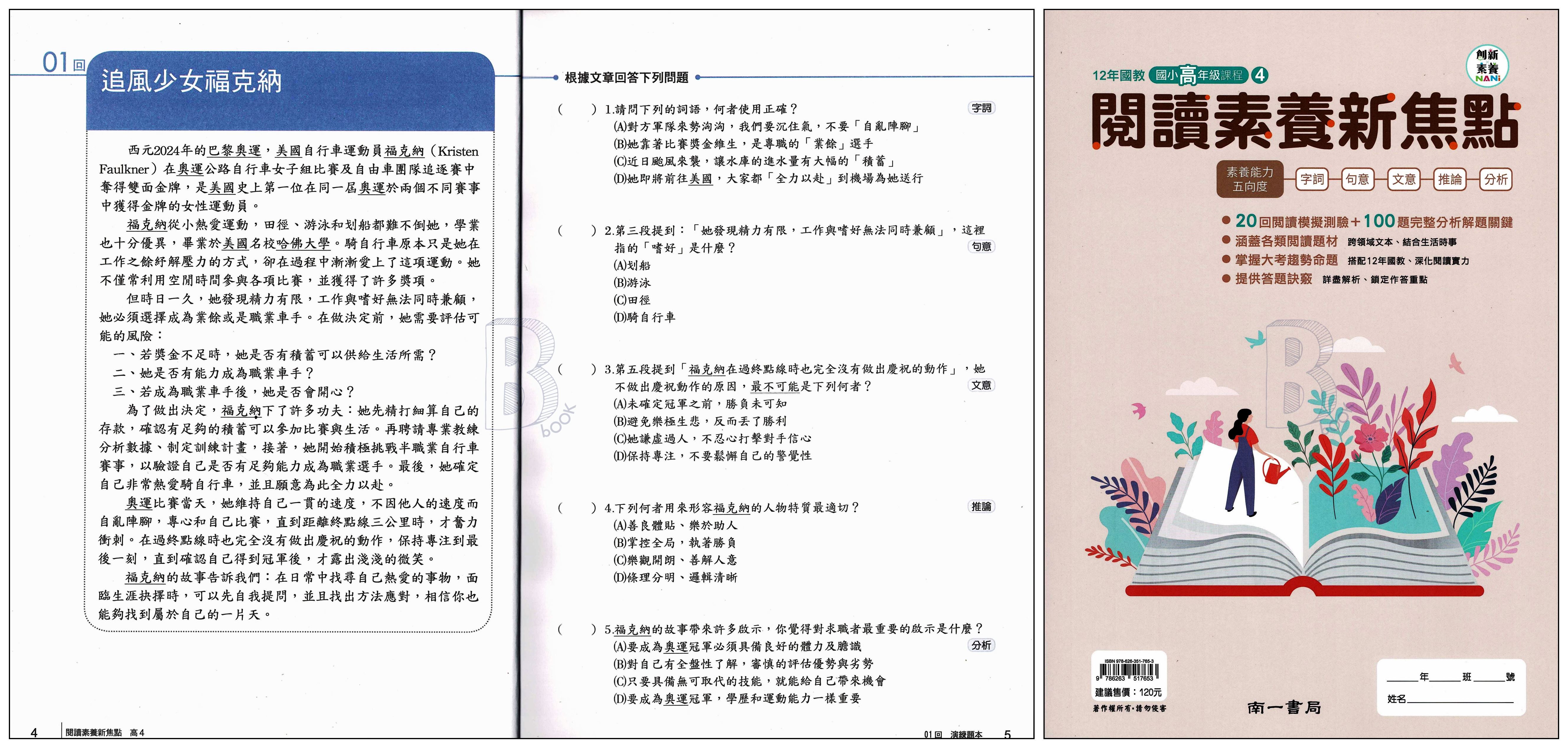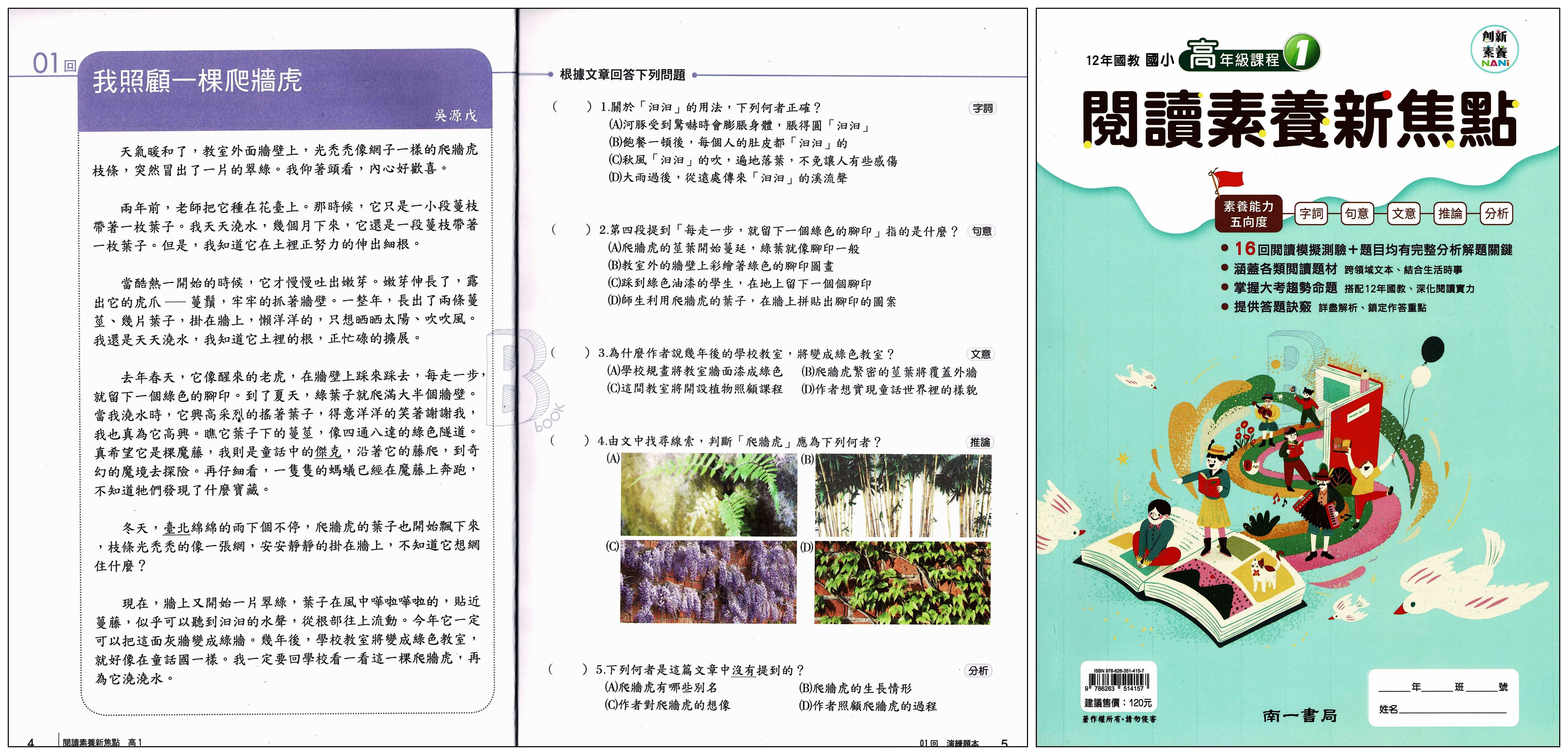 南一 閱讀素養新焦點 國小5年級課程 高1 陸續推出 輔助教材